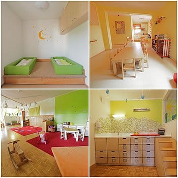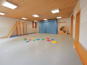 Unsere Einrichtung ist in drei Stockwerke unterteilt. Im Erdgeschoss werden vorwiegend Kinder über 3 Jahren betreut. Die Räumlichkeiten im 1. Obergeschoss sind voll und ganz den Bedürfnissen von Kindern unter drei Jahren angepasst. Im Keller befindet sich noch ein Turnraum.