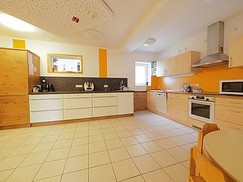 Im Erdgeschoss befindet sich die Sonnenscheingruppe. Zu dieser Gruppe gehört ein Gruppenraum mit Galerie, ein Nebenraum, ein Sanitärraum für Kinder und eine Gaderobe. Die Räumlichkeiten sind für Kinder über 3 Jahren ausgerichtet.